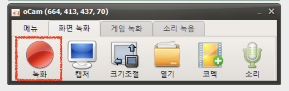 오캠 사용법은 정말 간단합니다. 실행 아이콘도 녹화, 캡처, 크기조절, 열기, 코덱, 소리 등 총 6개로 굉장히 심플하고 직관적입니다. 애플의 화면 녹화 기능에서는 소리 녹음이 안 되는 것이 아쉬웠는데 오캠에서는 마이크가 연결되어 있을 경우 소리 녹음 설정도 가능해서 게임 방송 하는 분들이 활용하기 좋을 것 같습니다. 실제로 '게임 녹화' 설정도 있어서 해당 카테고리에 더 최적화 되어 있기도 합니다.